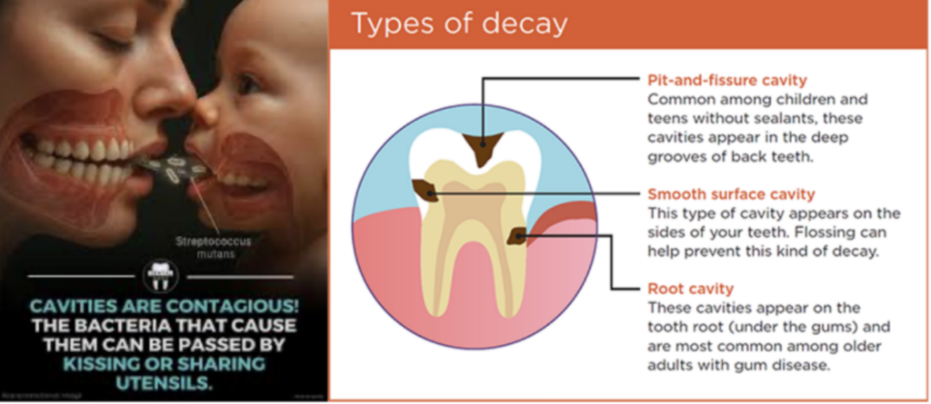 Cavities aren’t just about sugar. They’re caused by bacteria. And yes, those bacteria can actually spread from one person to another. Everyday habits like kissing, sharing spoons, straws, or even putting a baby’s pacifier in the mouth can pass cavity-causing bacteria. The main culprit is Streptococcus mutans which stick to teeth and produce acids that damage enamel. Saliva is full of bacteria, some good, some harmful. When two people share saliva, the cavity-causing bacteria hitch a ride in those tiny droplets. Once they reach a new mouth, they attach to the tooth surface, especially where plaque already exists. If sugars are present, these bacteria quickly start producing acid, which weakens enamel and leads to cavities over time. Babies and young children are most vulnerable. Their teeth are still developing, and once these bacteria settle in, the risk of early cavities skyrockets. That’s why parents with untreated tooth decay often see their kids struggle with cavities too. Adults can spread it as well, but strong habits like daily brushing, flossing, less sugar, and regular dental visits make a big difference. The bacteria may transfer, but they don’t stand a chance if your mouth is protected.